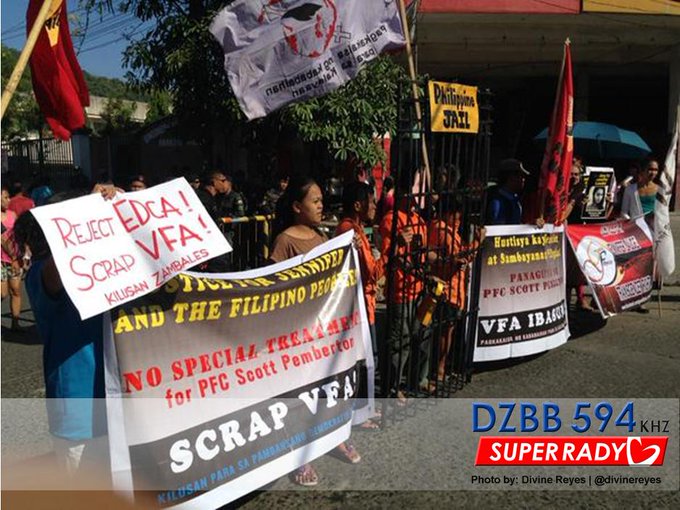 They also brought streamers and placards calling for the scrapping of the Visiting Forces Agreement and Enhanced Defense Cooperation Agreement.