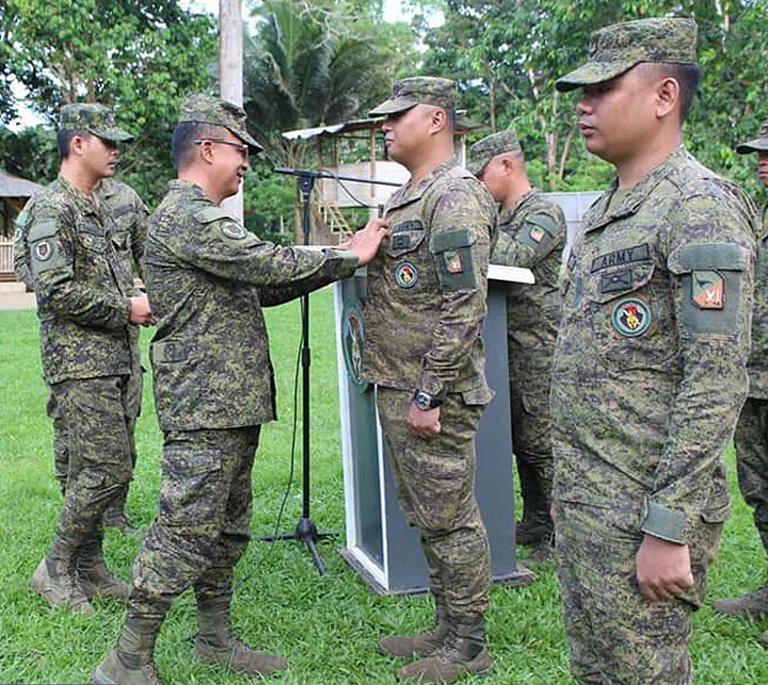 The 100IB said the five promoted officers were the following: Second Lieutenants John Rey Herezo (Corps Engineer); Jovi Jayson Rivero (Ordnance Service); Jetram Taes (Infantry); Placido Romualdo Tagros (Infantry); and, Mark Jay Santiago (Infantry).