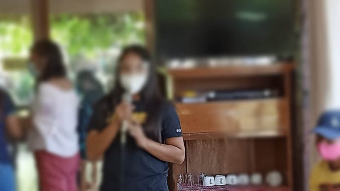 Former rebel “Niña” (identity hidden for security reasons) thanks the government for giving her support, during a recent program in San Jose, Antique. PIA PHOTO
