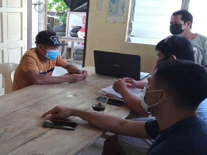 According to “Toto” (left), he decided to leave the New People’s Army because support from the communities is waning. He is shown here talking to policemen and soldiers at the Sibalom, Antique police station where he surrendered on April 28. PRO-6 PHOTO