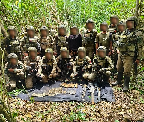 ZAMBOANGA. Troops of the 55th Infantry Battalion’s (IB) Bravo Company recover an arms cache of the New People’s Army (NPA) rebels in the hinterlands of Ranao-baning village, Amai Manabilang, Lanao del Sur, on Wednesday, May 1. A photo handout shows the troops posing for documentation picture after they unearthed the arms cache. (SunStar Zamboanga)