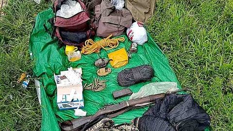 NEGROS. A 15th Infantry Battalion soldiers show the M14 assault rifle, and four backpacks and other recoveries at the encounter site in Sitio Cambugyot, Barangay Camindangan, Sipalay City, Negros Occidental, where one NPA member was killed and an M14 assault rifle was seized following a 25-minute firefight on January 10, 2025. (Photo by 15IB)